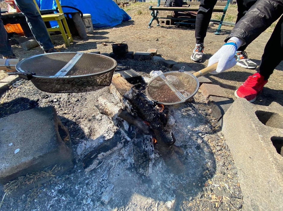 また、ご自由に持ち寄っていただいた食材も焚火で焼いて楽しみました。サツマイモやマシュマロ、パンのほか、ニンジンやリンゴまであり、バラエティ豊かで楽しかったです!淹れ立てのコーヒーと焚火で焼いた香ばしい食材で、いつもとは違う特別な朝をお過ごし頂けたことと思います!ゲストハウスここたまやでは今後もイベントを開催してまいりますのでぜひご参加ください!