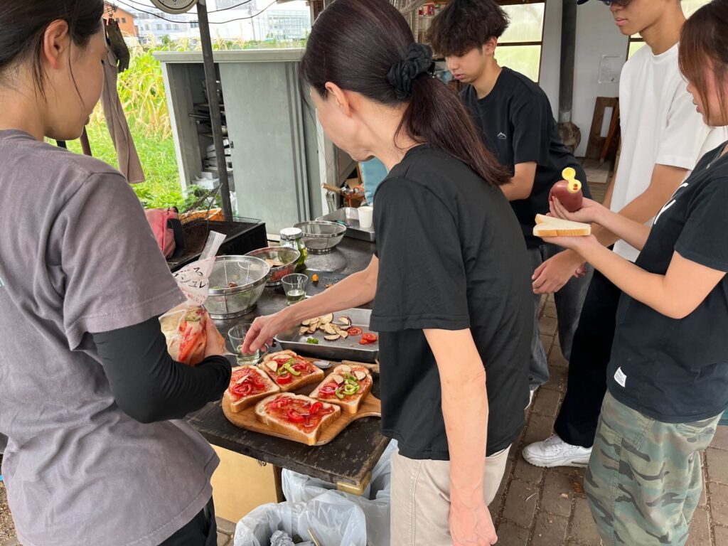パンに具材をのせて…